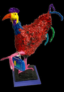 2022Met zijn handtasje wil deze haan andere hanen imponeren.