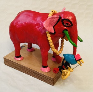 2025Deze kleurrijke olifant werd in opdracht gemaakt voor een dame die beelden van olifanten verzamelt.